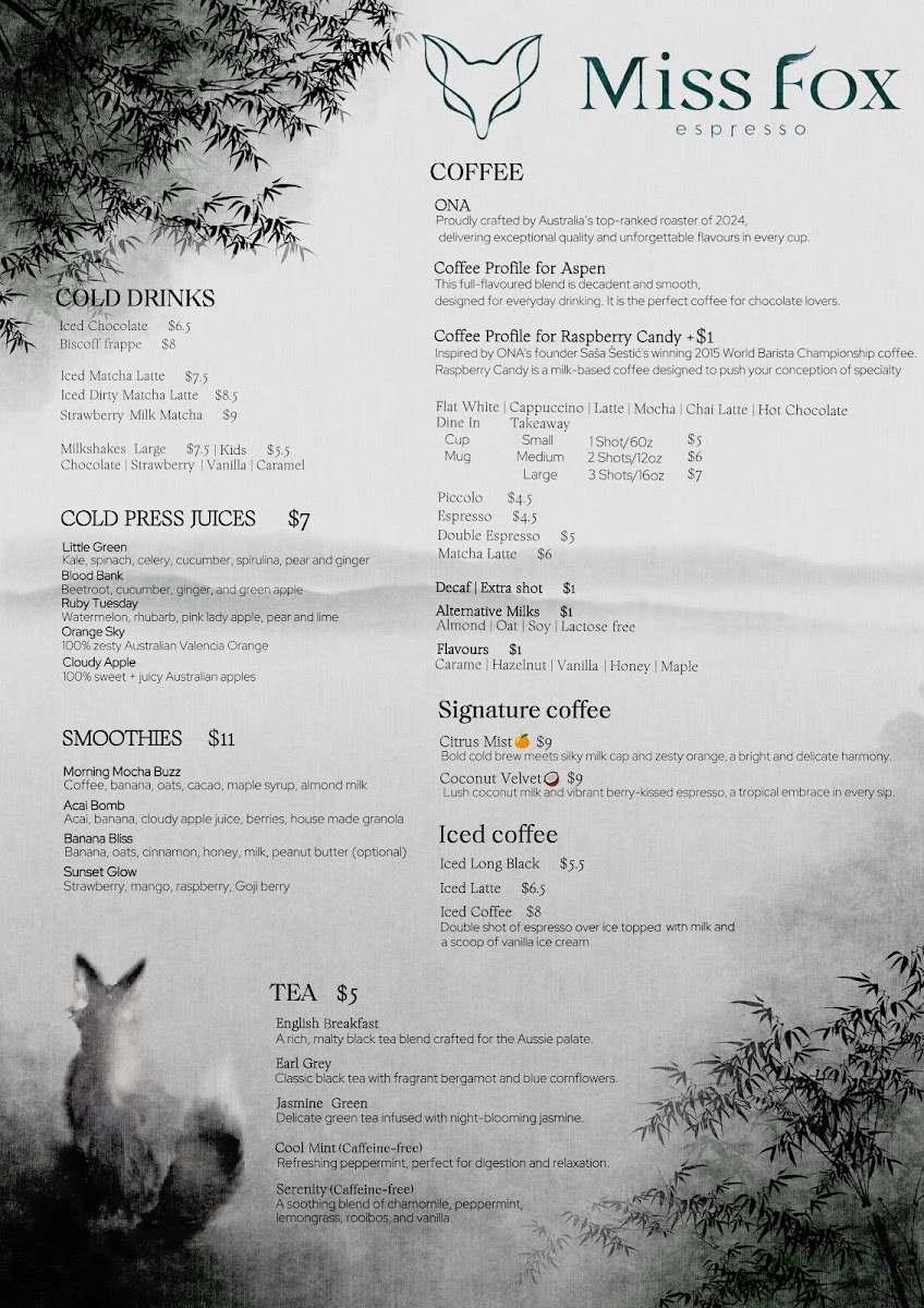 With welcoming staff that provide both warmth and top-notch service, Miss Fox espresso invites you to relish a comforting atmosphere that begs for long afternoons spent indulging in delightful food and coffee. This gem is not just a meal; it's an experience that calls you back time and again.